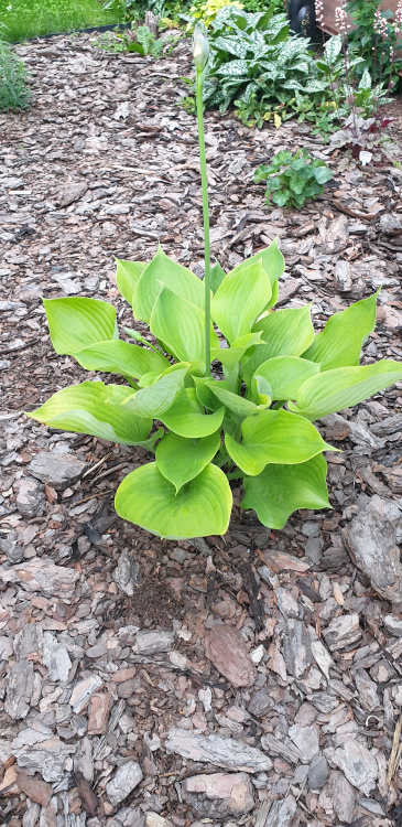Хоста Сам энд Сабстенс (Sum and Substance) – уникальная в своём роде гигантская хоста с удивительной окраской листьев, которую можно сравнить с оттенком сочного зелёного яблока. Недаром в её названии использовали английскую идиому, которая переводится на русский как «Квинтэссенция» или «Сама суть». Сорт выведен американскими селекционерами Полом Аденом и Флоренс Шоу ещё в 1980 году. С тех пор сорт Sum and Substance не раз побеждал на выставках и завоевал титул «Лучшая хоста года». Декоративные особенности: Сам энд Сабстэнс формирует мощный куст диаметром до 160 см и высотой до 90 см. Гигантские листовые пластины достигают длины 50 см и ширины 38 см. Поверхность листьев глянцевая, с приятной текстурой, окрашена в тёплый желтовато-зелёный цвет. Пика декоративности куст достигает на 4 год после посадки. На одном месте хоста Sum and Substance может расти более 20 лет без потери декоративных качеств. Хоста Сам энд Сабстенс цветёт в июле-августе. Соцветия-метёлки формируют многочисленные простые цветки-колокольчики нежного сиреневого оттенка. Размер цветка – до 3 см. В ландшафтном дизайне Гигантские хосты хорошо смотрятся в одиночных и групповых посадках на газоне и вдоль дорожек, могут украшать берега прудов, используются в дизайне каменистых садов и миксбордерах. Гибрид Sum and Substance отлично подойдёт в качестве солитера или фона при сложных ландшафтных композициях, выгодно подчёркивая яркость своих соседей. Условия выращивания Для хосты лучше подобрать просторное место в полутени. Культура предпочитает плодородные влажные почвы без застоя воды, в идеале – суглинки. К кислотности особых требований нет. Хоста Сам энд Сабстенс неприхотливое растение. Куст достаточно подкармливать органическими и минеральными удобрениями, обеспечивать своевременный полив, прополку и мульчирование. Растение выдерживает температуры до -40°C, устойчиво к заболеваниям и вредителям, хорошо переносит неблагоприятные погодные условия. На зиму кусты не обрезают и не укрывают, удаляют лишь засохшие цветоносы.
